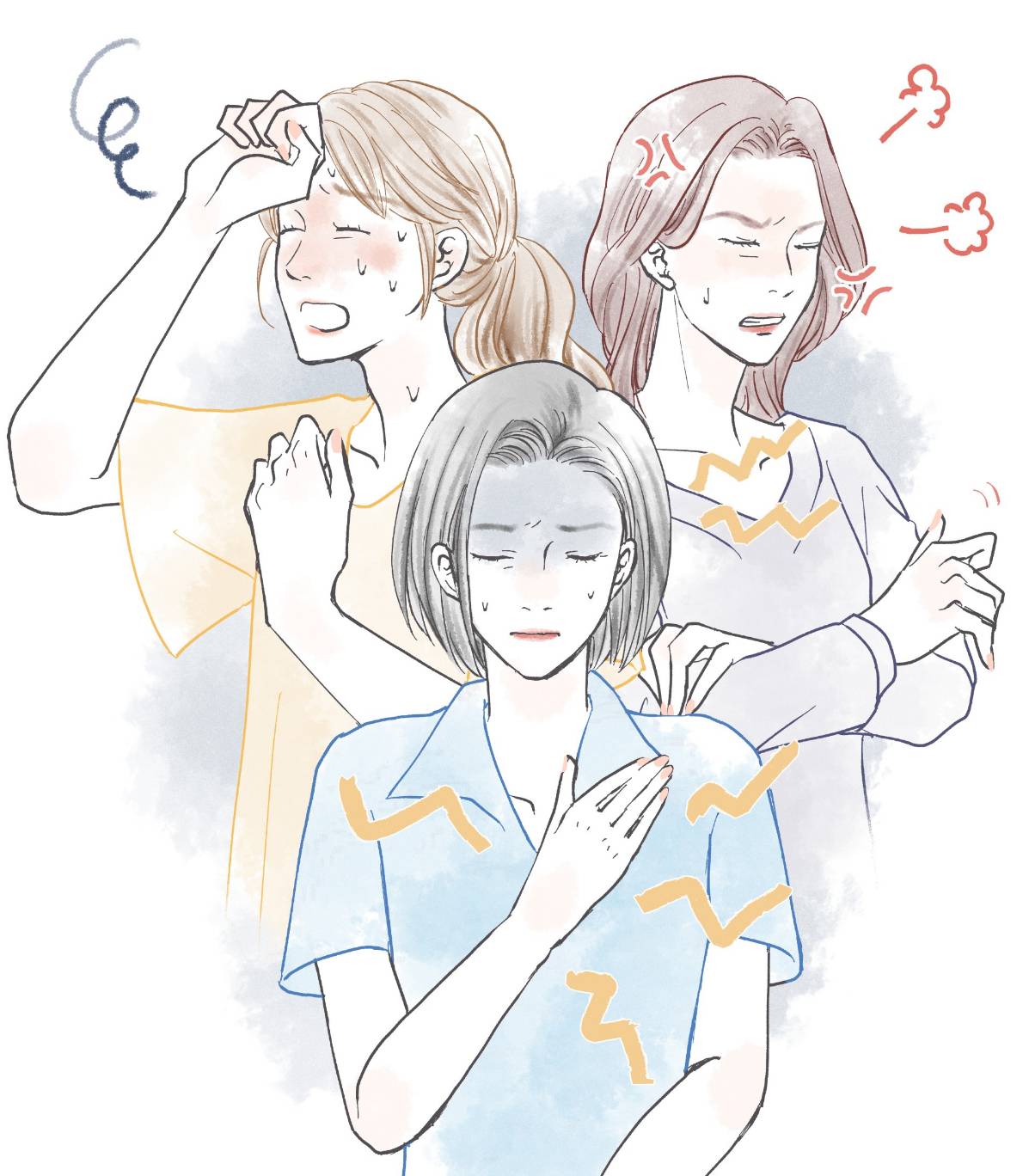 私も一年前は皆様と同じ様に以下の症状で悩み、イライラしたりため息まじりの毎日を送っていました。